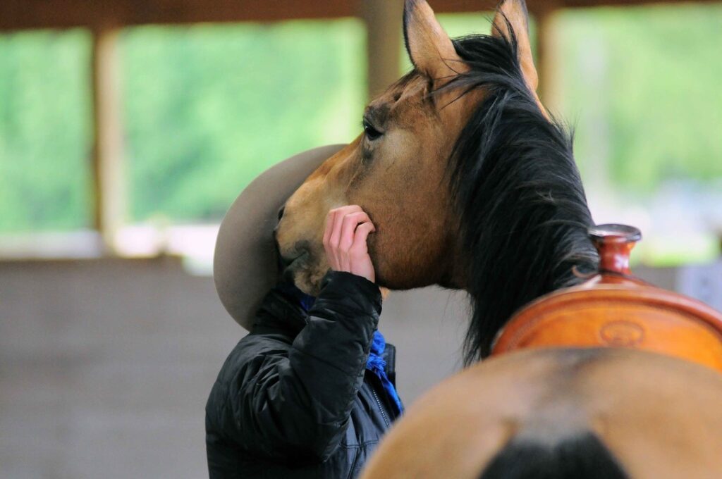 Learning to focus on and value what is happening on the inside of the horse instead of what the body is doing is an important aspect of Relational Horsemanship. This is how they “tell us their secrets”, although it may look like this one is whispering some to me!